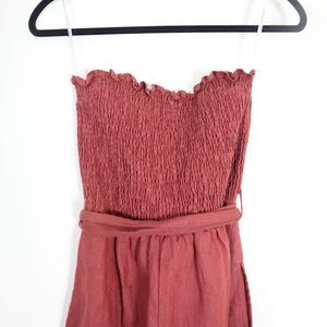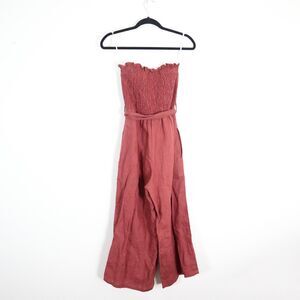 Faithfull the Brand Size S 100% Linen Lais Wide Leg Crop Jumpsuit Strapless