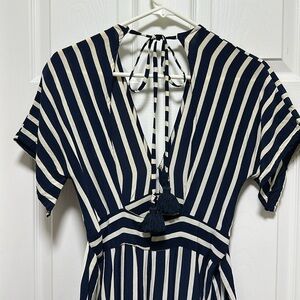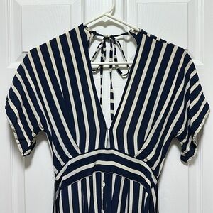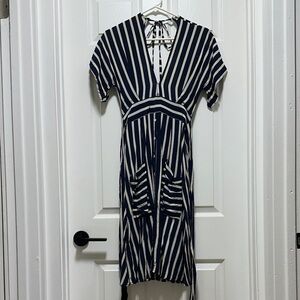 Faithfull the Brand Striped Open Back Milan Midi Dress Navy White Size S/4