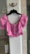 Flaunting an idyllic plaid print, this crop top flaunts a corseted bodice and puff sleeves.