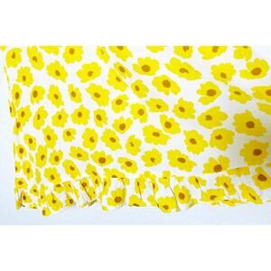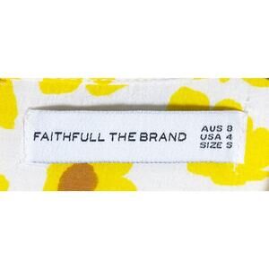 Faithfull the Brand Women's Florence Mini Dress Constance Floral Print Marigold Round Crew Neck Puff Sleeves Ruffle Trim Zip Up Tie Back