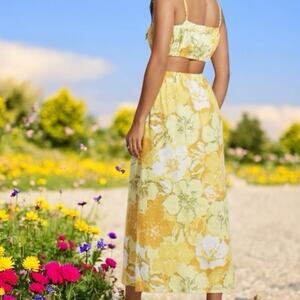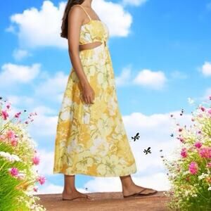 faithfull the brand el rio maxi dress loretta floral Cutout Maxi Dress sold by Anthropologie Size 14 USA Size Featuring 70s inspired ring detailing and cut-out through the waist, a standout silhouette of our El Sol collection is the El Rio Maxi Dress. Elasticated through the waistline, shoulder straps and neckline, this style was designed to complement and celebrate every shape and size. The Dress is 100% Linen light and airy to wear, whilst being gentle on the environment.
