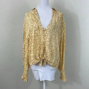 Faithfull the brand yellow snake print tie front long sleeve blouse size 4