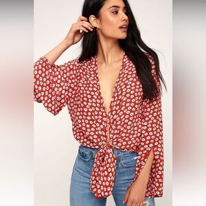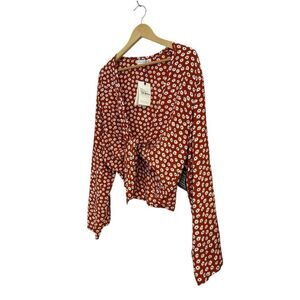 Faithfull the Brand Teguise Red Floral Print Tie-Front Top, Size 6, NWT