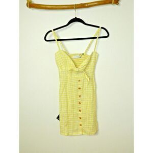 Faithfull The Brand Dress Size X-Small Yellow Rodeo Linen Gingham Front Tie Mini
