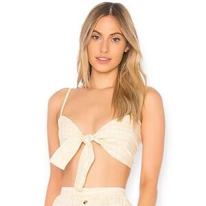 Faithfull The Brand Gingham Yellow & White Knot Front Bralette Crop Top NEW