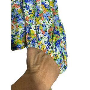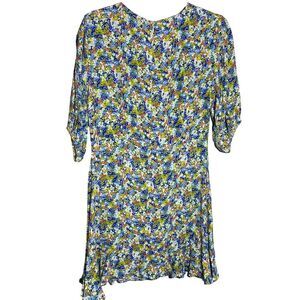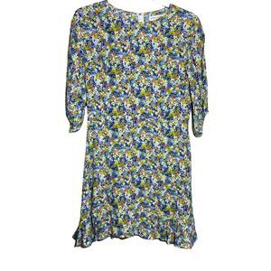 Jeanette is a floral printed mini dress made of lightweight crepe with elbow length puff sleeves, round neckline and a flouncy ruffled hem. Wear yours on vacation with shell jewelry and a crocheted tote.