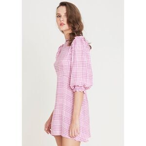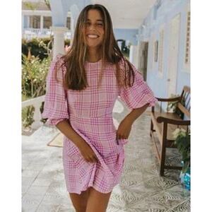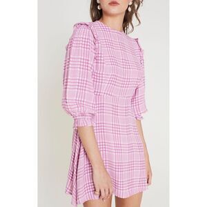 We are loving the femme and flirty coming from the Faithfull the Brand Edwina Pink Plaid Ruffled Puff Sleeve Mini Dress! Lightweight woven fabric, in a pink and white plaid pattern, shapes this sweet little dress that features a rounded neckline and darted bodice, framed by three-quarter length balloon sleeves with ruffled detail at the shoulders and elasticized cuffs. Fitted waist tops an A-line skirt with a mini hem. Hidden back zipper/clasp.
