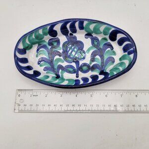 Crafted with meticulous attention to detail, this Fajalanza Pottery Dish exudes a charming oval shape, perfect for those looking to add a touch of elegance to their table or display cabinet. Originating from Spain, the dish is a testament to skilled craftsmanship, featuring a vibrant multicolor palette that brings a contemporary flair to any setting. The piece is a true original, boasting a rich heritage with its ceramic construction and traditional pottery production technique. At 8 inches in length, it sits comfortably on any surface, making it an ideal choice for both everyday use and special occasions. Add this versatile and stylish pottery dish to your collection and enjoy its timeless appeal.