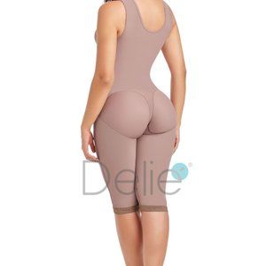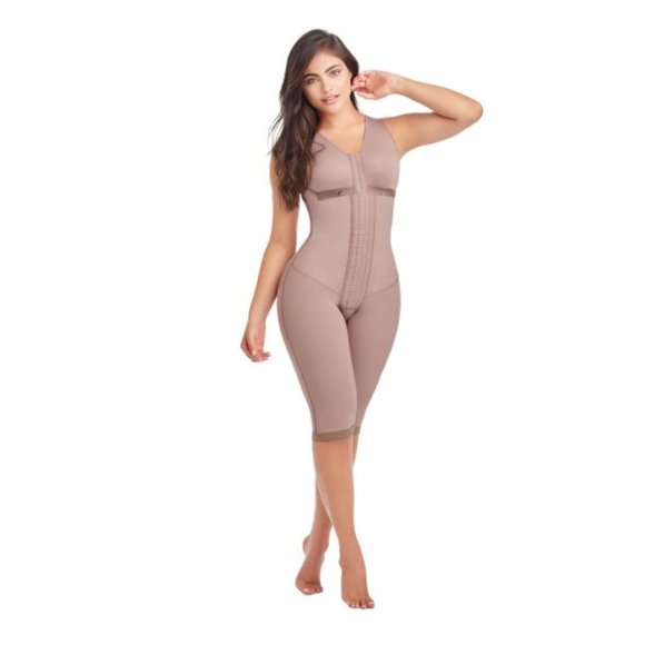 Side closure and three internal hooks superimposed in soft fabric that protects the skin facilitates posture and makes it almost invisible with outer clothing. • Complete body control. • Built-in bra with three levels of adjustment. • Natural buttock enhancement. • Double abdominal reinforcement to control and define. • Internal lining throughout the garment with Viveltex components.