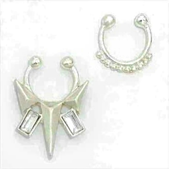 Fake Silver Spike Rhinestone Septum Rings