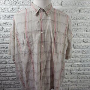 Elevate your casual wardrobe with this Falcon Bay Sportswear men's shirt in beige/red plaid. The short-sleeved shirt features a collared neckline and a button closure, making it perfect for any casual occasion. With a regular fit and woven cotton blend fabric, this shirt is both lightweight and comfortable, making it suitable for all seasons. The shirt has a single needle tailoring and a chest size of 60 inches, which is perfect for a 3X size. It is machine washable, making it a versatile addition to any wardrobe. Whether you're dressing up or down, this shirt is a perfect fit for any occasion.