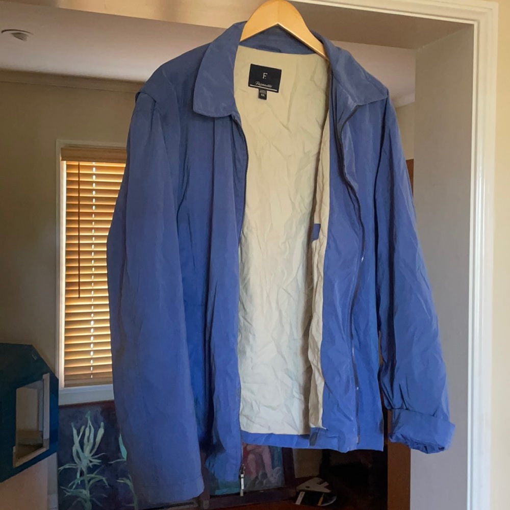 Light blue, tan interior faconnable jacket
