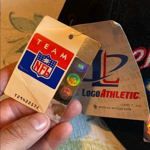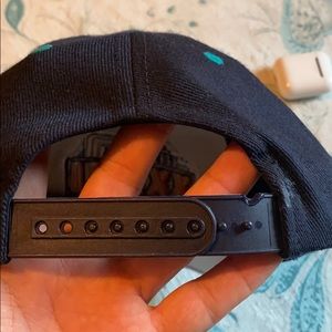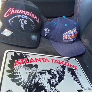 Falcons hat pack comes with both hats and license plate cover . The black hat is in great condition but the blue one has a small burn on the strap. It’s in the pictures