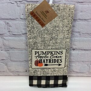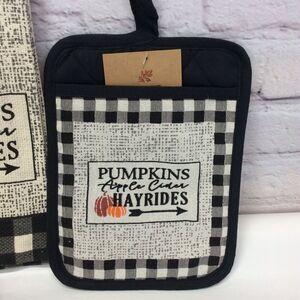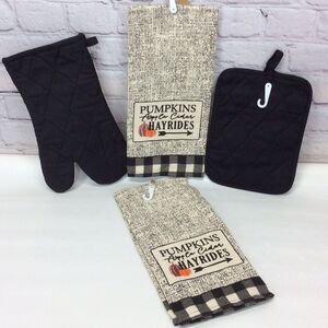Fall 4 Pc Kitchen Set Pumpkins Buffalo Check 2 Towels/1 Oven Mitt/1 Pot Holder