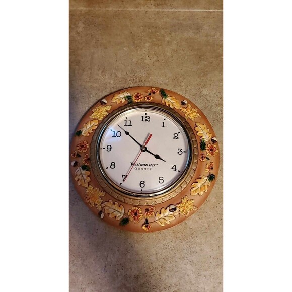 Fall Autumn Westminster Quartz Decorative Wall Clock Leaves Pumpkins Leaf