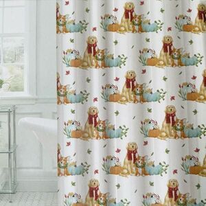 NWT adorable fall autumn dogs and floral botanical pumpkin patch print white fabric shower curtain. Perfect for a dog lover!