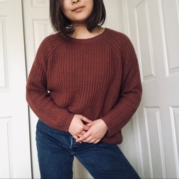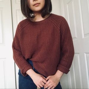 This sweater has the perfect fall color (mix of brown/pink?) Soft material ~in excellent condition~