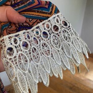 Fall Boho Dress w/ Beautiful Lace Sleeves Cottagecore Aztec Southwestern Medium