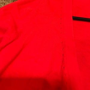Perfect cardigan for fall! It is a burnt orange/red in color, light weight, perfect for layering.