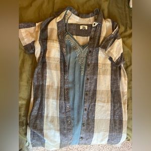 Perfect shirt dress for your autumn activities! Beautiful metal buttons, and a medium, gray and cream check pattern. We are layered over an outfit or under… Or both! See my last few photos for styling options with other listings I have 🤌🎃