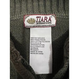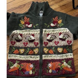 Fall Chicken Thanksgiving Flower Knit Vintage Green Granny Zip M Sweater RN83437