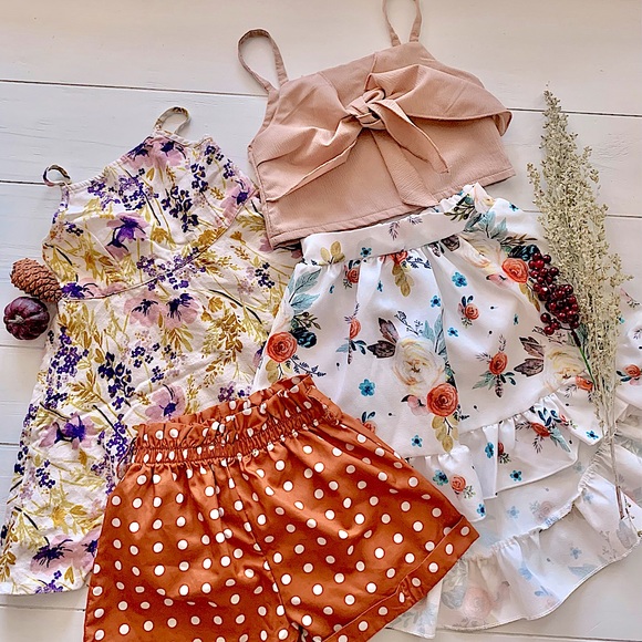 Bring on the fall vibes with this cute bundle! Size 3T. Clean and in good condition. You can combine the crop top using the high low skirt or the cute polka dot shorts. So stylish!