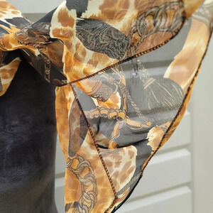 Fall Colors Chain Chiffon Scarf Wrap Beige Brown Black Print OS
