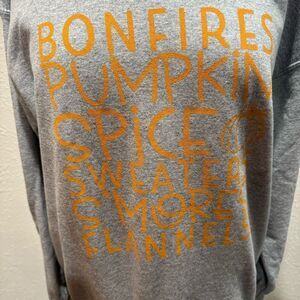 "Bonfires, Pumpkin Spice, Seater, S'Mores Flannels" Graphic