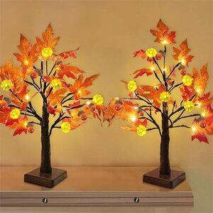Fall Decor 2 Pack 18 Inch Prelit Fall Maple Tree Thanksgiving Fall Decorations