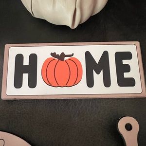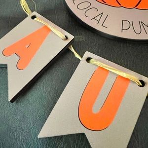 Dress up your space with a little fall decor. Comes with everything you see. Faux leather pumpkin, orange lights, bag of leaves, garland and little plaques. 🍁🌻🍂