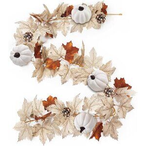 Maples Leaves Garland: Fall maple leafed garland with white pumpkins pinecones. Each garland is 5.9 ft long, featuring uniquely gray-white maples leaves. Gray-white leaves: 3.5*4 inch, brown leaves: 2.5*3.5 inch, leaves pitch: 1.8 inch, pumpkins: 3*3 inch
