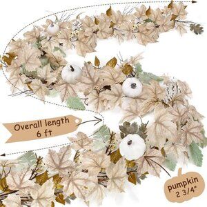 Fall Decor Garland - 6Ft Autumn Maples Leaf Pumpkin Berry Garland White Decor