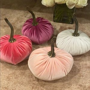 Fall Decor Set of Four plush pumpkins! see measurements in photos. Soft and light. White, pink, light pink, purple.