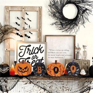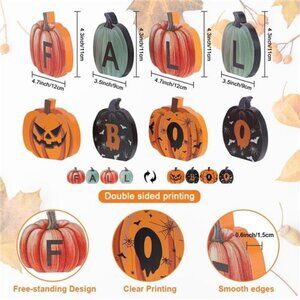 🧿🎃【 Fall & Halloween Decor】 This charming double-sided pumpkin wooden decor celebrates both autumn and Halloween. One side features a beautifully painted pumpkin with the word "FALL," capturing the warmth of the season. Flip it over to reveal "BOO," adorned with playful Halloween designs. This versatile piece effortlessly transitions your decor from cozy autumn vibes to spooky Halloween fun, adding a cheerful touch to any tabletop and inviting the spirit of the season into your home.