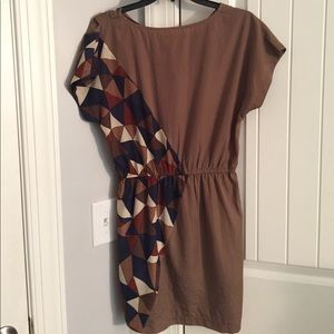 Short sleeve dress. Perfect for fall with leggings and boots. Light-weight material. Triangle pattern on side. Good condition.
