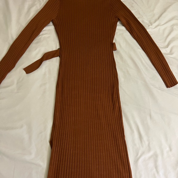 Excellent condition, never used. 80% rayon and 20% polyester. It’s a brownish or terracotta color.