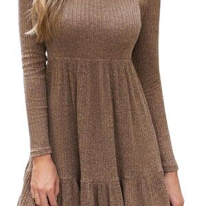 Unique Design: The brown long sleeve knit mini fall dress with its cozy knit, round neckline and dress hem with ruffled design, long sleeve, slim fitted, this dress blends elegance and comfort for a look that s as versatile as it is stunning which is your perfect match