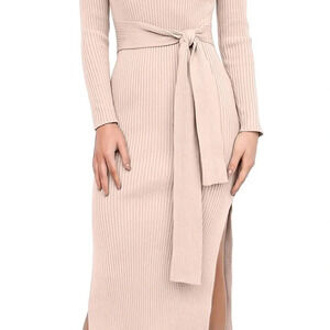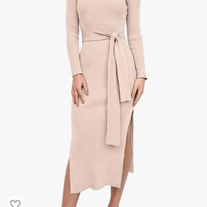 Beautiful pink . Features - This is a cute sweater dress features round neck, long sleeve, slit sides, tie waist, midi length.