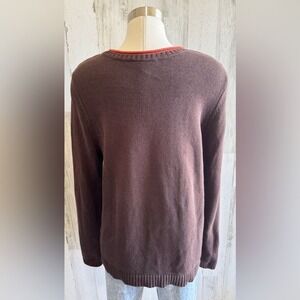 Cozy brown sweater with autumn-themed embroidered leaves with sequin and beads.