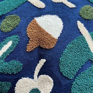 Tufted oak leaf and acorn design with a deep blue embroidered background. inserts give a “