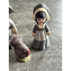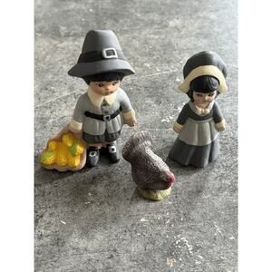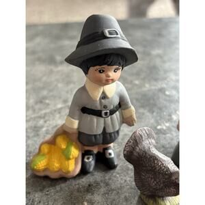 Fall Figurines Turkey Pilgrim Girl & Boy Ceramic Vtg Thanksgiving Decor Set of 3. Condition is Used. Shipped with USPS Ground Advantage.