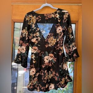 Fall floral romper. Fits as an XS. Elegant floral wrap top, with button closure. Perfect for any fall occasion! Smoke and animal free home.