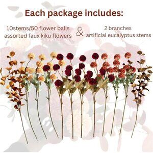 🧿Kiku Flower Orange & Burgundy & Fake Orange Brown Eucalyptus - Available in bulk artificial flowers and eucalyptus stems bulk, you can create cozy fall decor arrangements, boho floral arrangement centerpieces, or even minimalist fall decor setups. Whether it's for fall wedding centerpieces for tables, fall bouquet artificial flowers, or just as faux flowers for vase, the possibilities are endless.