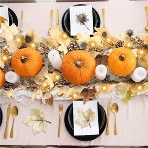 Fall Garland with Lights 6Ft Autumn Garland with Pumpkins Maple Leaves