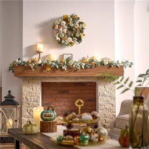 Fall Garland with Lights 6ft Pumpkin Leaves Mantle Table Centerpiece Thanksgivin