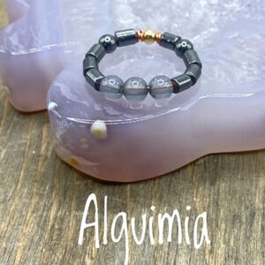 Fall Goth vibes Hematite and Labradorite beaded gem ring/handmade bohemian