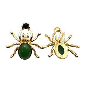 Fall Halloween Spider Earrings Pierced 18K Gold Plated Green Blue Rhinestone