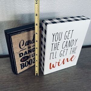 Lot of 2 decor signs in good preowned condition, minor wear around edges. “Candy is dandy but I like booze” and “You get the candy, I’ll get the wine.”