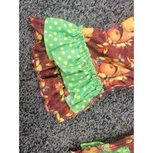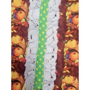 Fall Harvest Baby Romper With Green Polka Dot Ruffles & Lace Trim