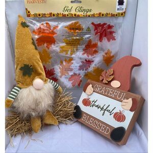 đ Fall Harvest Gnome DĂ©cor Bundle â Light-Up Plush, Wooden Sign & Gel Window Clings